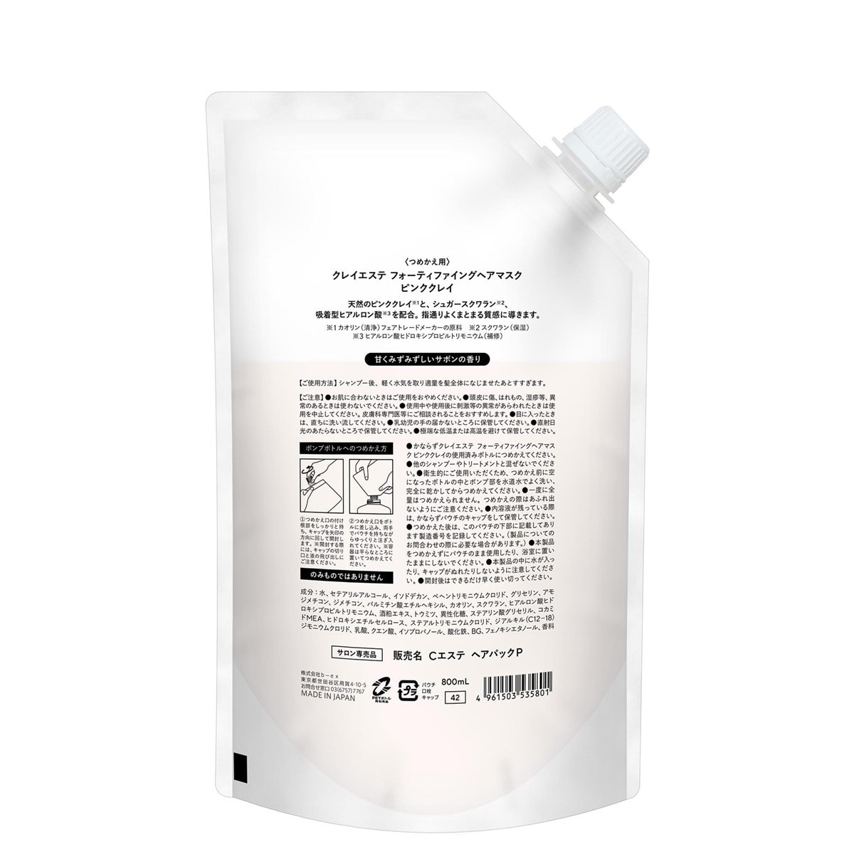商品名:クレイエステ フォーティファイングヘアマスク ピンククレイ 800ml(パウチ)