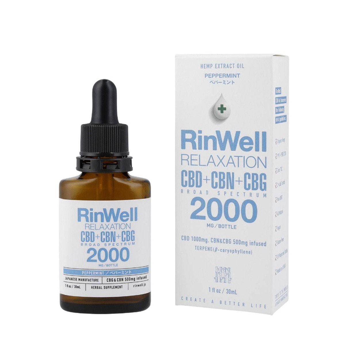 商品名:RinWell CBD+CBN+CBGオイル 2000mg ペパーミント 30ml